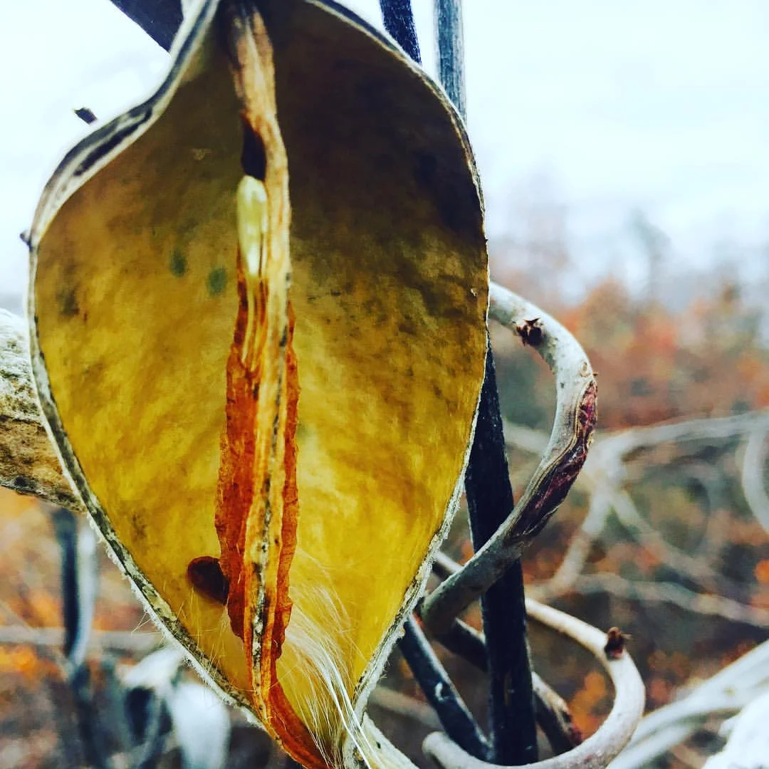 Milkweed Husk Holding Onto One Seed