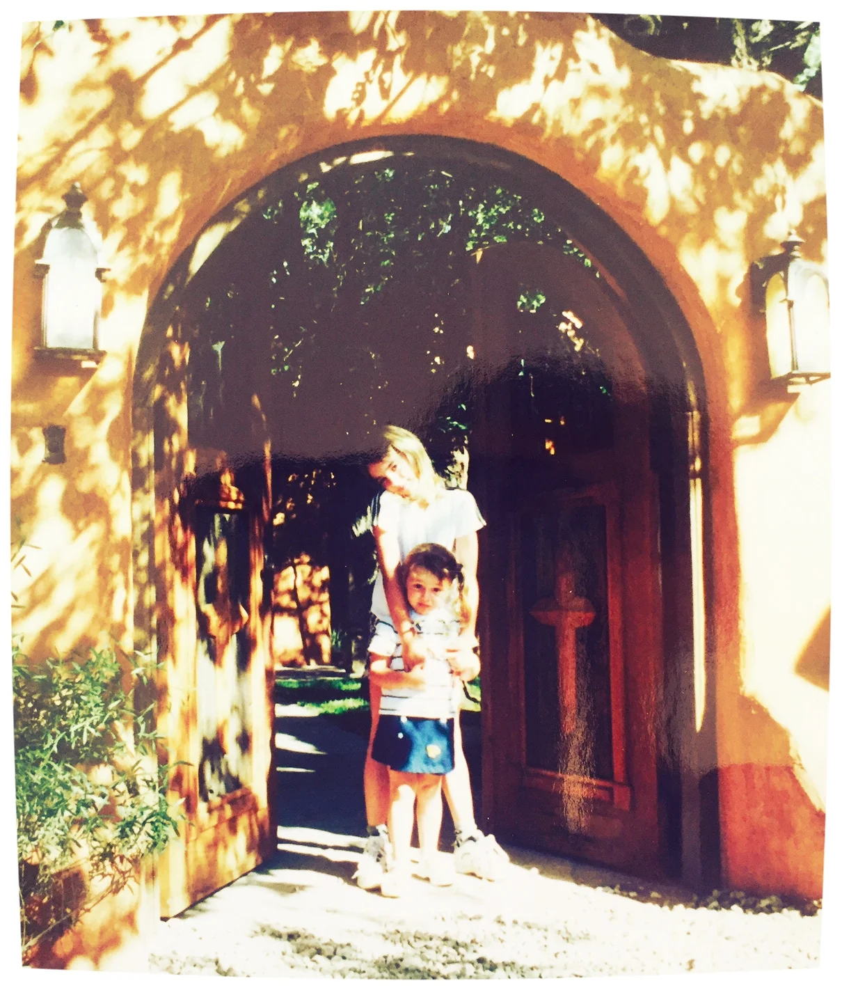 Sisters in the adobe door of a hacienda one special time in Taos, NM, land of enchantment