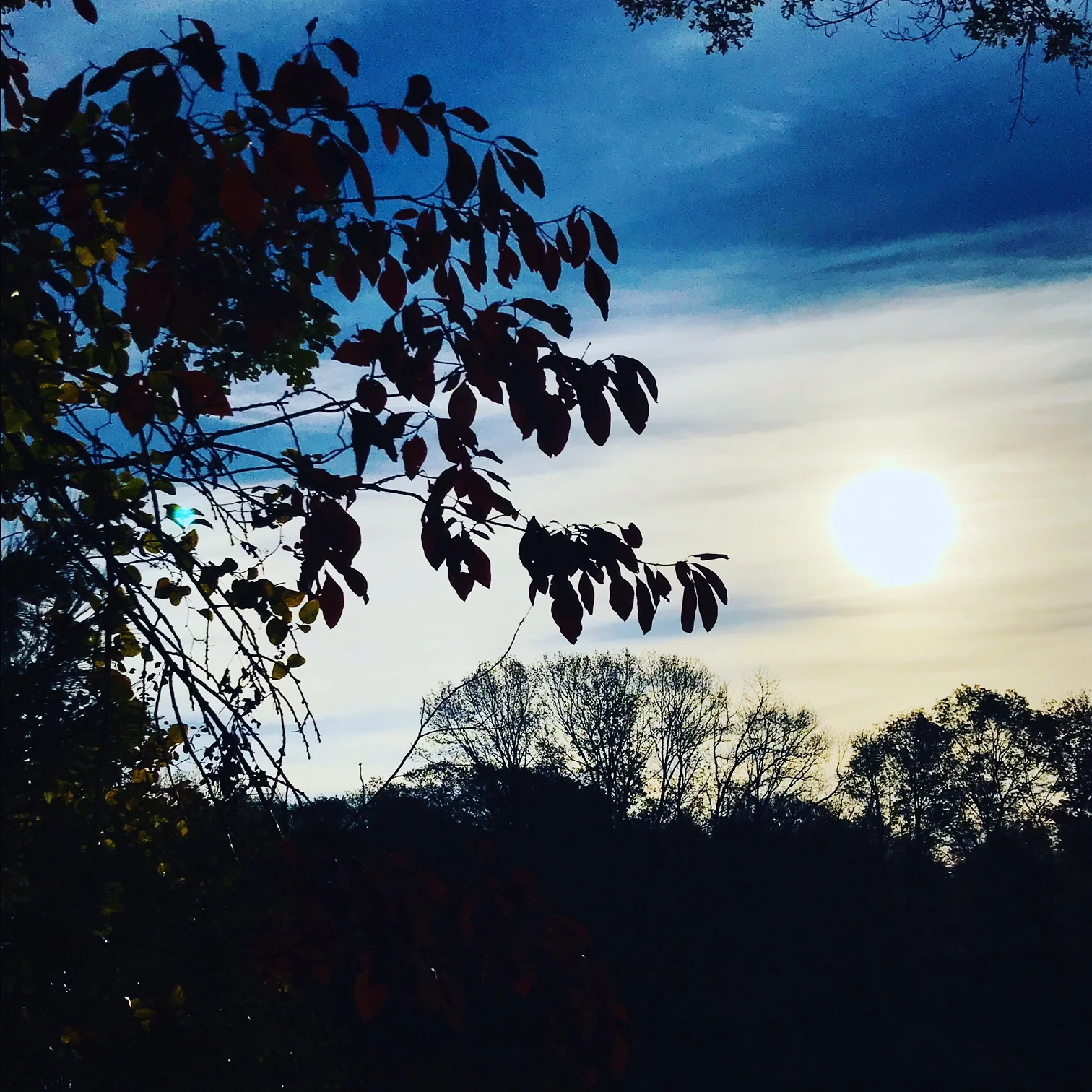 After my walk I go to the little building we call a barn that isn't a barn at all, it's two rooms, one down, one up, painted floors with stairs and windows to the trees, no heat, which on a day like this nobody needs, the sun pours through a skylight and bathes the walls we painted brightly, and it's only steps to the door of the house across the yard, but it has double doors, like a barn, and a very long desk my brother built us – fits just right – plenty of places to sit and silence, which almost feels like loneliness, (because will anyone ever find me here, and what's going on over there, anyway, what am I missing?) even though I came here to be undisturbed, fishing for a way to get a poem, first draft, but then, and then his voice calls up still looking for me after all these years, through the open windows, hello? are you busy? and, yes, I am in the first draft of what I hope, but I say yes, and he climbs with his coffee and breakfast sandwich and I half write half talk half listen while he chews and sits and this is how a marriage is like a tree in leaves of flames, October light.