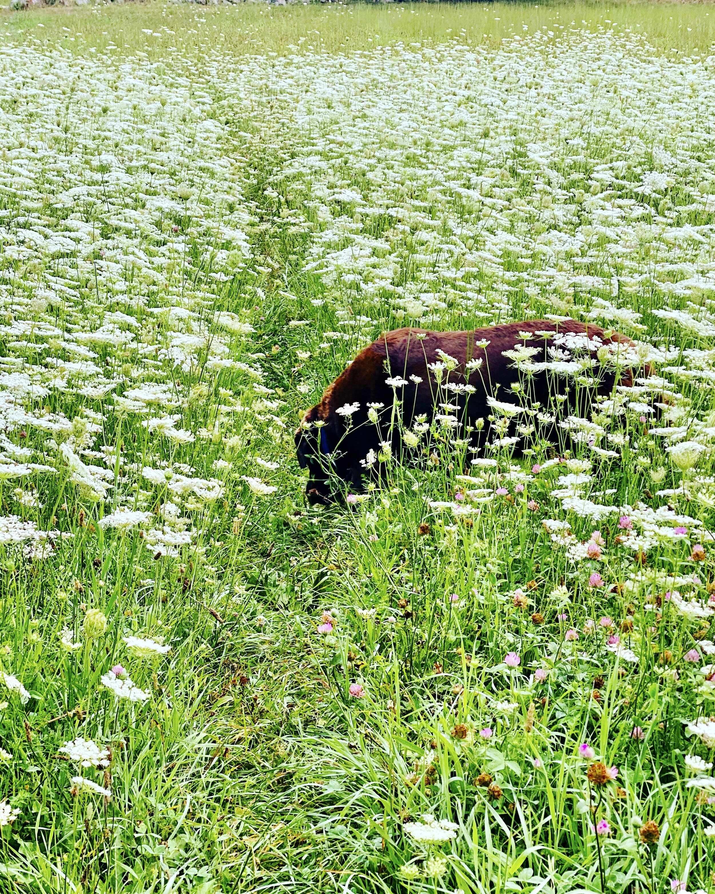 Charlie in the morning meadow